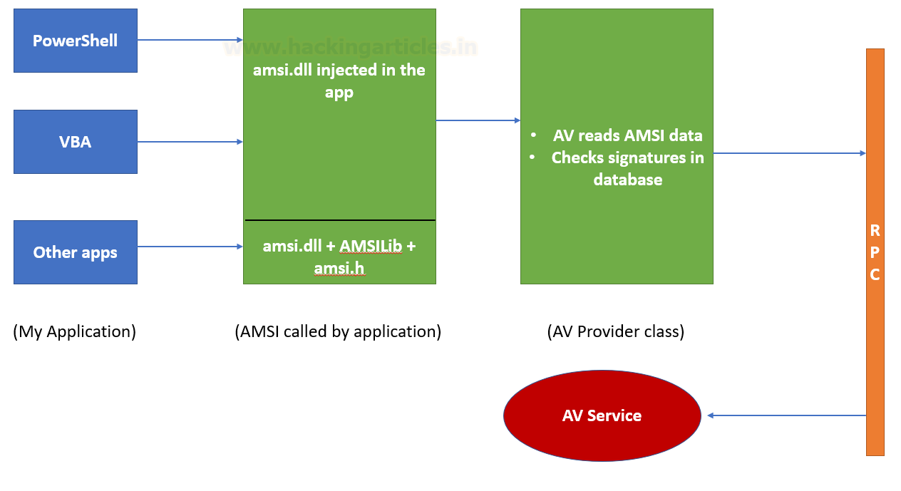다양한 프로그램 이나 AV 제품에서 AMSI를 호출하여 Malware 검사 및 보호할 수 있으며, 파일 및 메모리 검사, 콘텐츠 원본 URL/IP 신뢰도 검사 및 기타 기술을 허용하는 호출 구조로 동작한다.