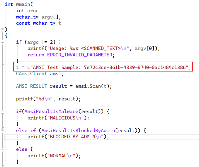 아래 Github의 AMSI Sample 코드를 통해 AMSI Scan을 직접 확인해보자.