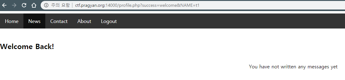 회원가입을 하고 로그인하면 가입한 ID로 NAME 파라미터에 입력이 되어있다.
